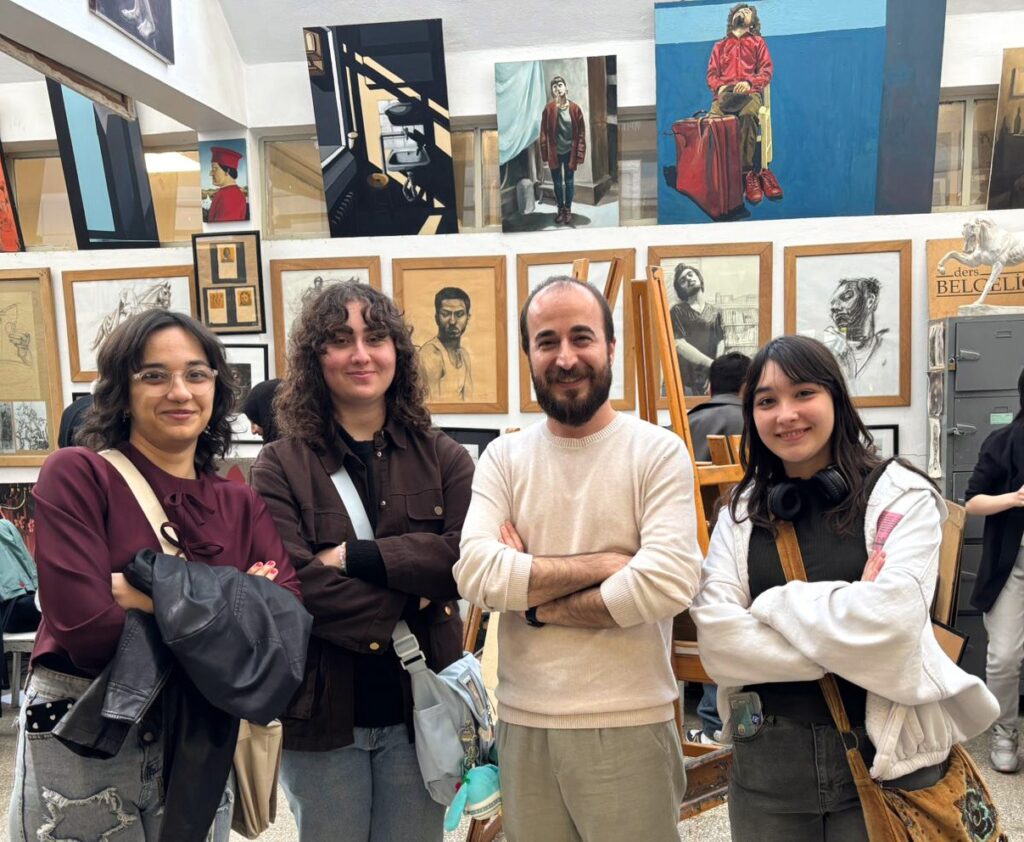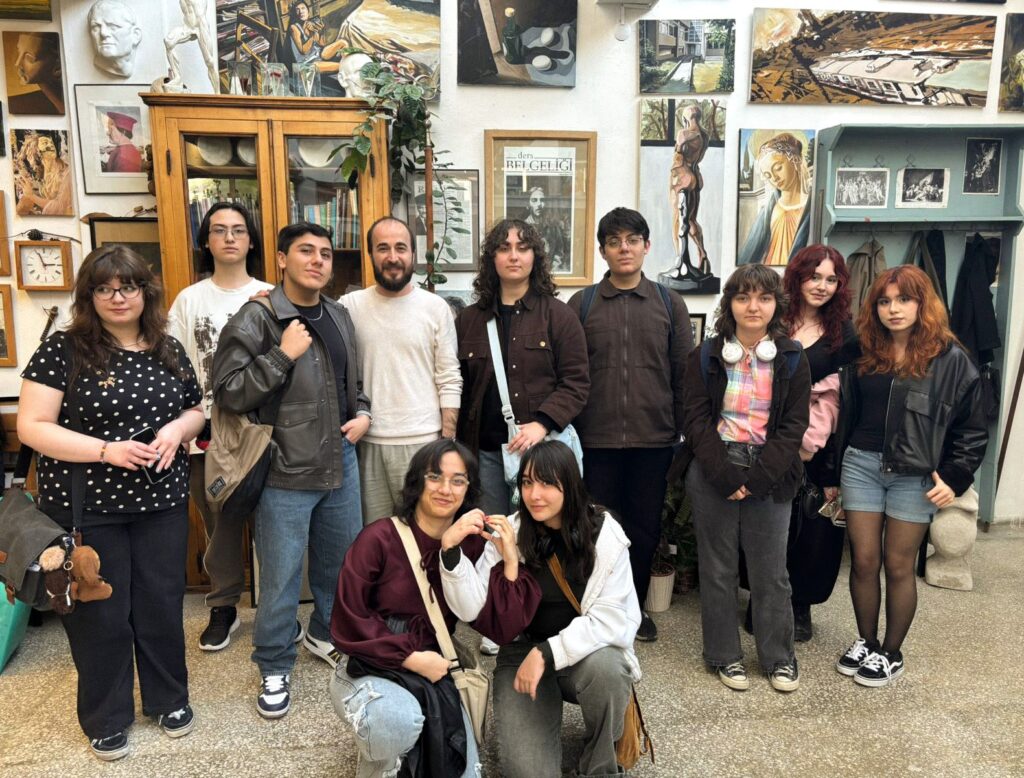 Zeytinburnu Güzel Sanatlar Lisesi öğrencileri, atölyenin mezunlarından öğretmenleri Yıldırım İnal eşliğinde atölyemizi ziyaret etti. Bu ziyaret, eylemsel olmanın yanında anlamsal boyutları da taşıyor! Yalnızca bir mekânı görmekten öte, kendi içinde canlı bir yaşam olan atölyeye kısa süreli dahil oldular. Atölyenin seslerine, görüntüsüne, gölgelerine dahil oldular! Duvarlar, resimler, heykeller…İşte şimdi gözlerde: geçmiş ile şimdi arasında bir geçiş. Ziyaret esnasında, atölyede 24.Belgelik sergisi hazırlığı devam ediyordu. Öğrenciler, eserlerin oluş süreciyle birlikte sergilenme sürecine de tanıklık ettiler. Atölyenin hareketleri, sanatın sürekli bir eylem-devinim halinde olduğunu gösteriyor. Düşünmek, çözememek, çözmek, üretmek, sergilemek ve tekrar tekrar düşünmek…