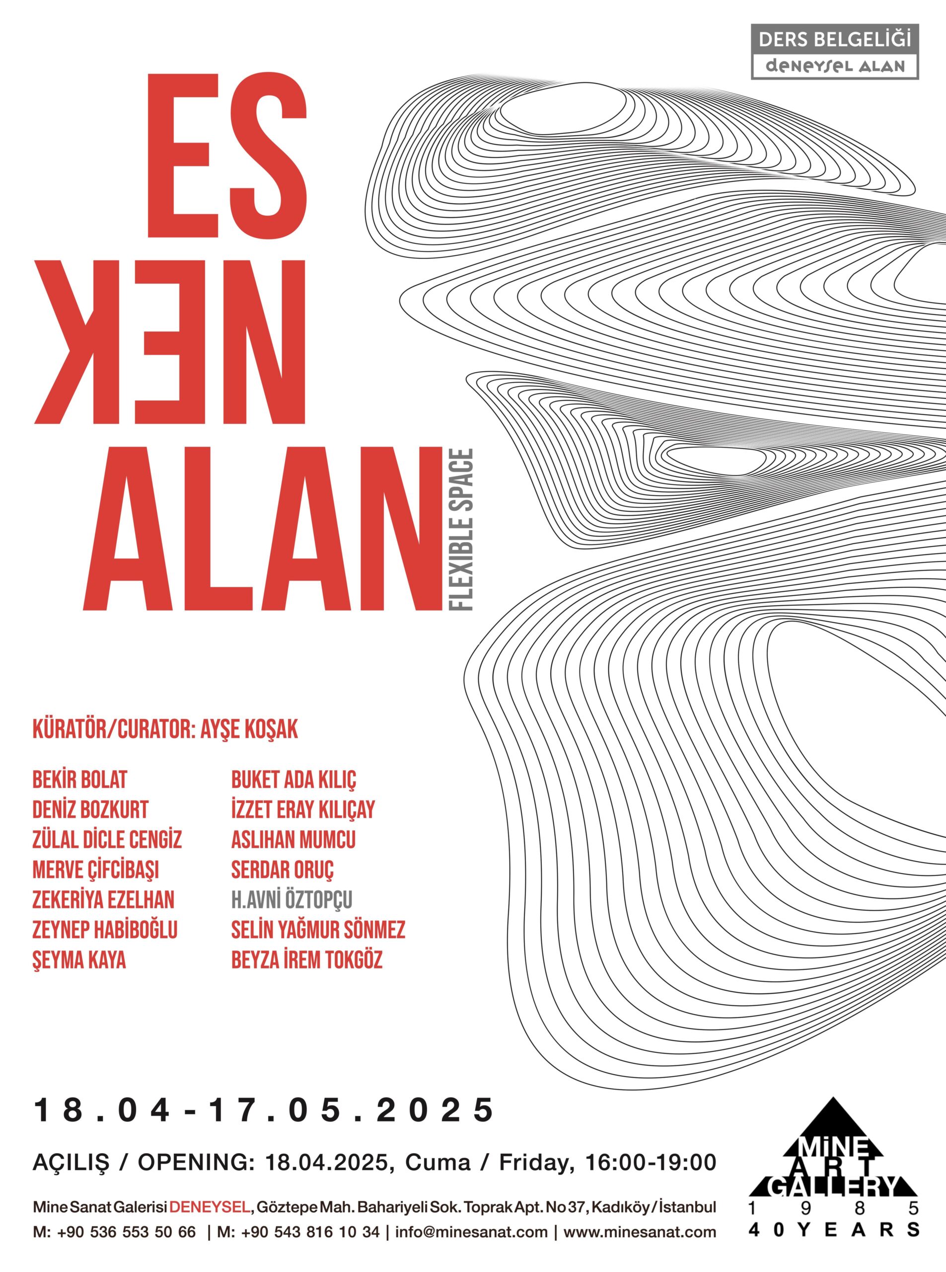 2025 yılı itibariyle Türkiye Çağdaş Sanat’ında 40. yılını kutlayan Mine Sanat Galerisi, 18 Nisan – 17 Mayıs 2025 tarihleri arasında “Esnek Alan” adlı sergiye ev sahipliği yapıyor. Galerinin 40. yıl kutlamaları kapsamında gerçekleşecek sergi, ders BELGELİĞİ’nin öğrencilerini Mine Sanat Galerisi DENEYSEL mekanında bir araya getiriyor.